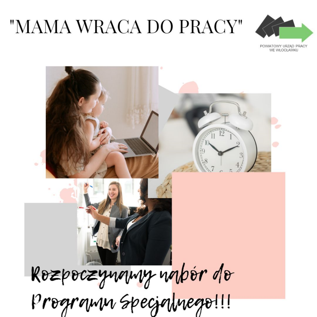 Powiatowy Urząd Pracy we Włocławku informuje, że od marca 2023 r. rozpoczyna realizację programu specjalnego pn. „Mama wraca do pracy”.