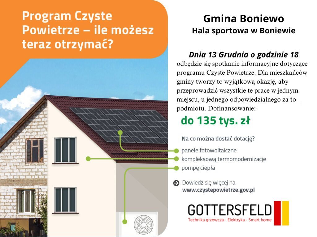 Urząd Gminy w Boniewie serdecznie zaprasza mieszkańców Gminy na spotkanie, które odbędzie się dnia 13.12.2023 r. o godz. 18:00 w salce na Hali Sportowej w Boniewie.