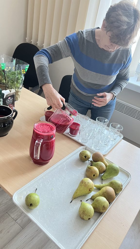 Czwartkowe zajęcia dietetyczne oraz gimnastyczne stały się stałym elementem tygodniowego harmonogramu. Podczas spotkań dietetycznych uczestnicy uczą się zasad zdrowego odżywiania oraz wspólnie przygotowują pożywne posiłki – m.in. świeże sałatki i soki.