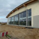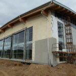 Obiekt choć jeszcze niedokończony już się wyróżnia niebanalną, nowoczesną architekturą. Wzrok przyciągają przede wszystkim konstrukcja dachu oraz częściowo przeszklona elewacja.