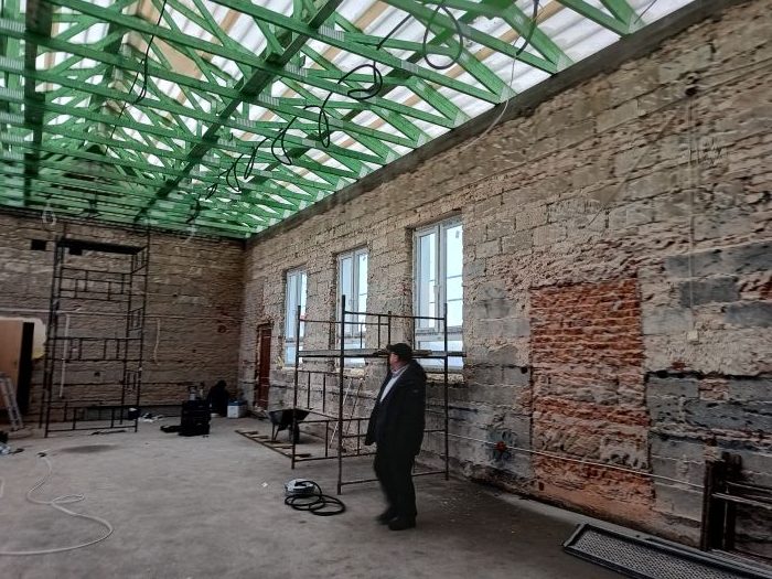 Zostały wykonane częściowe roboty rozbiórkowe, zamontowano okna , aktualnie trwają roboty rozbiórkowe, murarskie, sanitarne i elektryczne w budynku